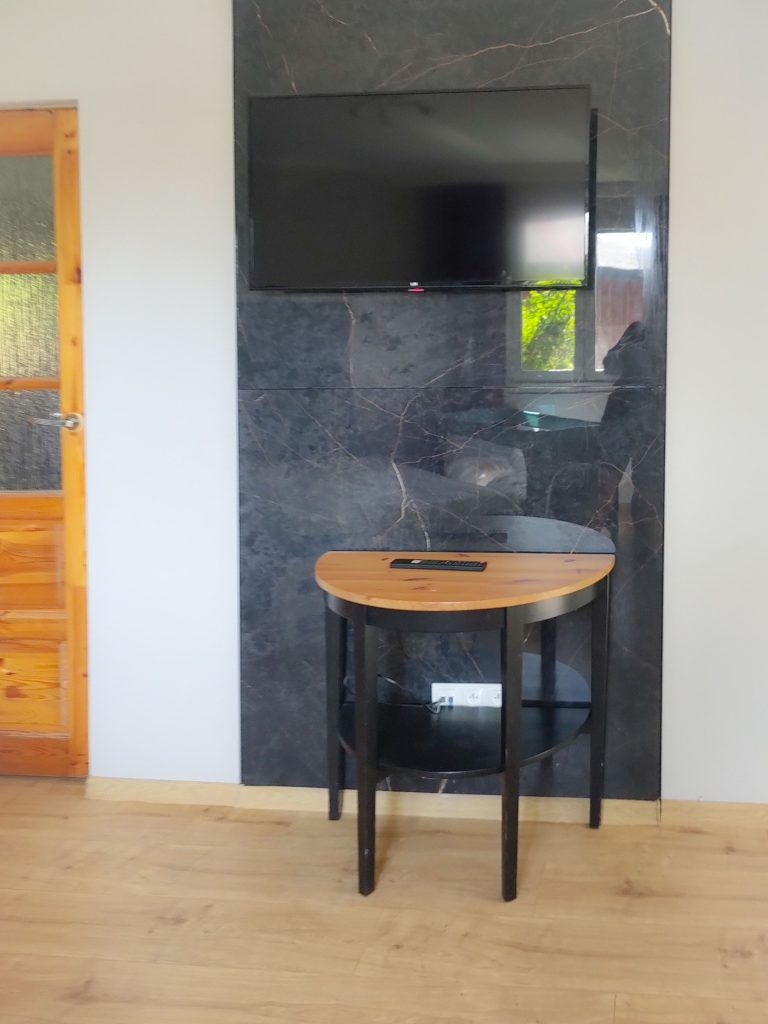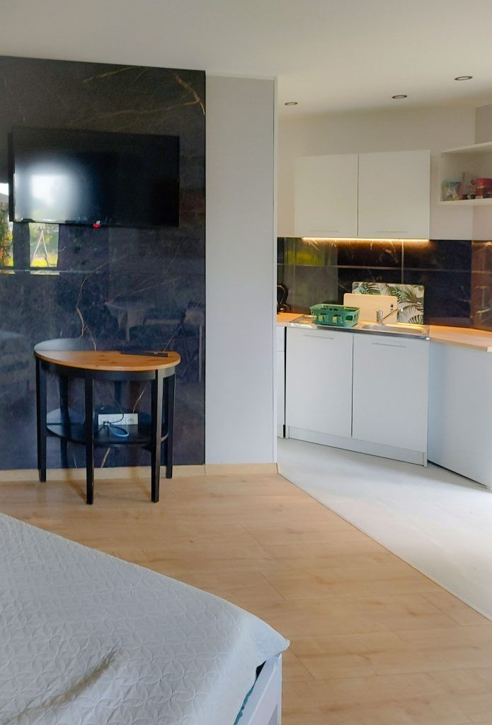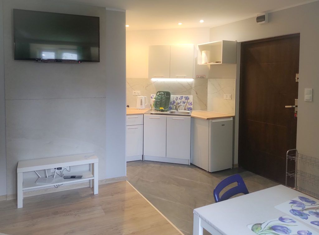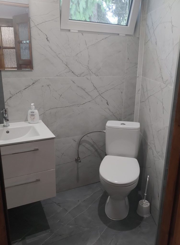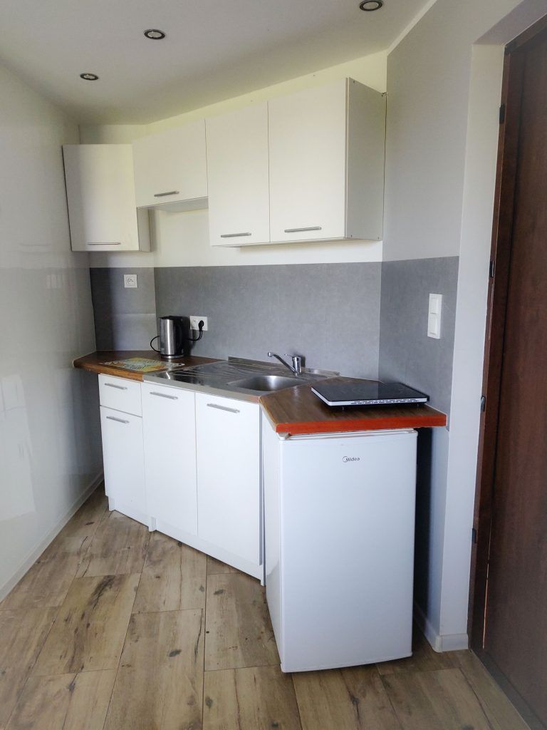 Jesteśmy w trakcie remontu domku nr 1. Nie zmieniamy układu, jedynie podnosimy standard. Zdjęcia mogą się różnić od wyglądu faktycznego. Zostaną zaktualizowane najszybciej jak to możliwe.